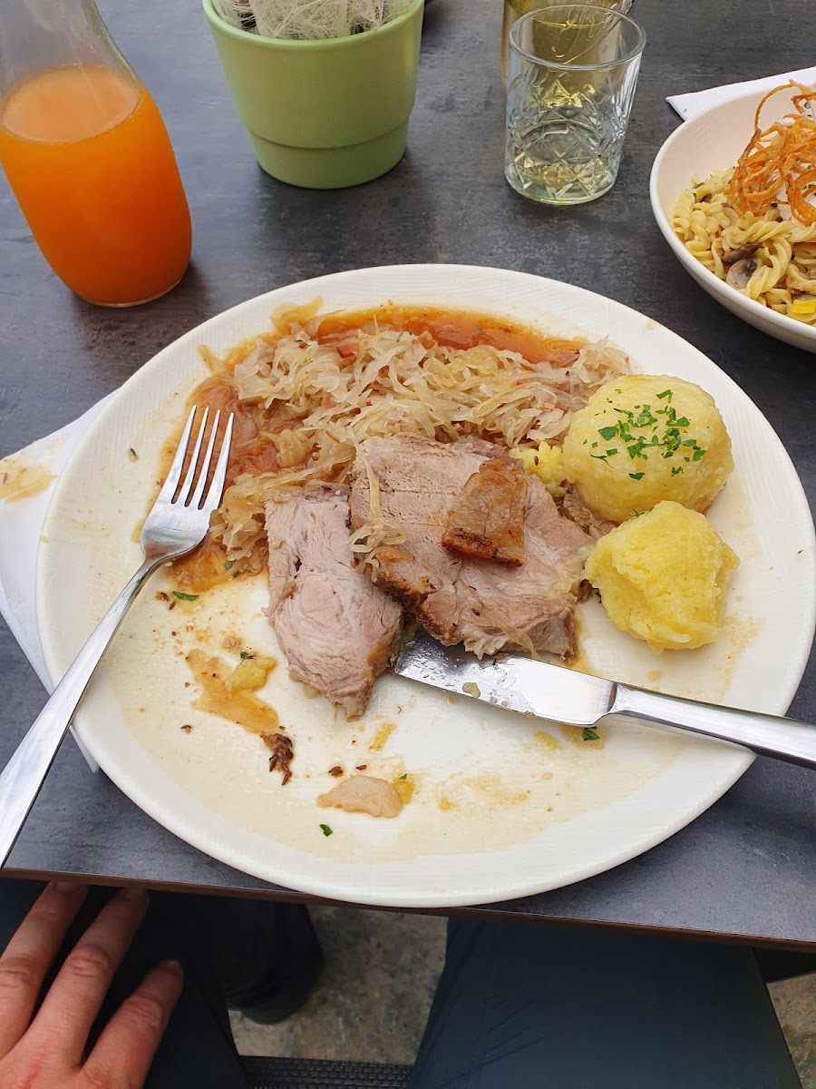 We had the spinach dumplings and goulash. They were delicious!! Everyone was very friendly. I would go back here.
